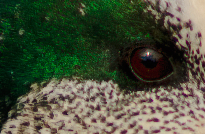 This image is mostly unprocessed, it has only been cropped and resized. There is a considerable amount of feather detail in the background pictures that can't be seen in the small picture at the top of this page. A small section of the original below shows the detail of the bird's eye.