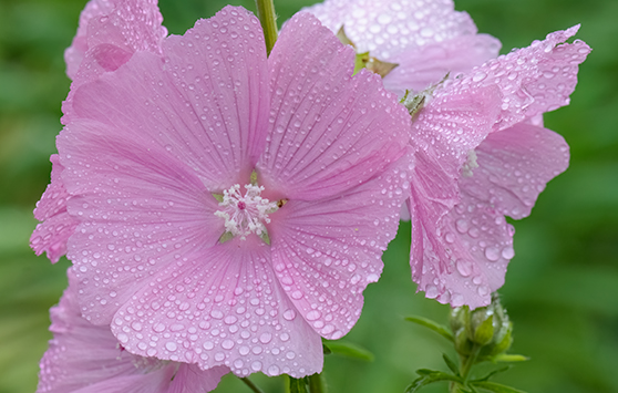 People generally avoid touring gardens while it is raining, but they may miss getting good looking pictures of wet flowers. This photo was made in Vancouver's Van Dusen Botanical Garden during a light shower. Modern camera equipment can cope with wet conditions (check your owner's manual first!) so a little rain is no excuse for keeping the camera inside. The lens used for this photo focuses internally which helps seal it from the weather. Make sure to use a lens hood to keep the rain away from the front of the lens.