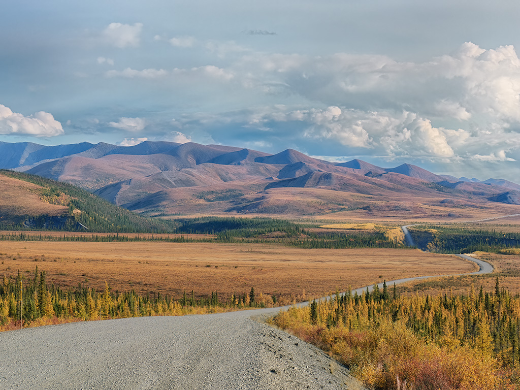 The Dempster connects the Klondike Highway in the Yukon to Inuvik (and Tuktoyaktik) in the Northwest Territories. It is 736km long (874km, including the section to Tuktoyaktik). This photo was made at the southern edge of the Richardson Mountains. This highway is the most beautiful drive we've taken and probably the world's best.