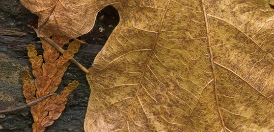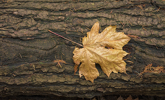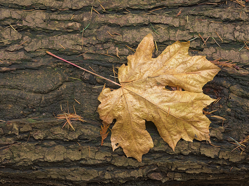 This is a (small) Bigleaf Maple leaf that has hallen upside-down onto a Doulas Fir log. Not only is this a nice computer background image, it makes a splendid large print. The thing that makes the print great is the amount of detail in the leaf. The picture below is zoomed into a small section to hint at the original's detail.