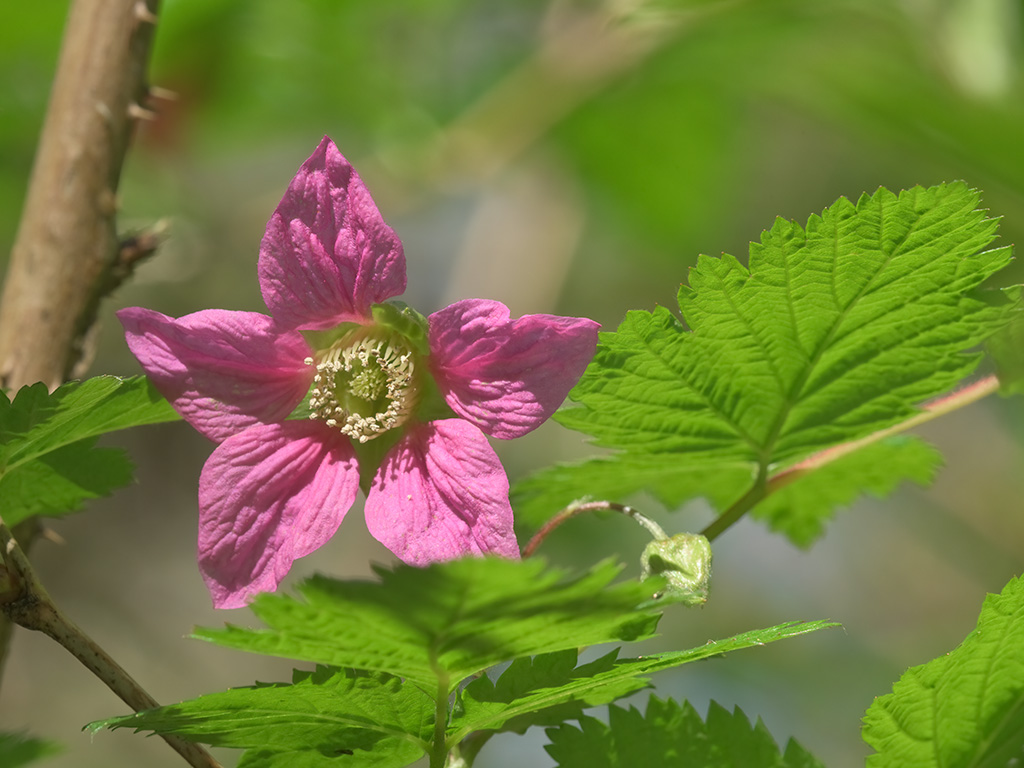 Another of the signs of spring in our area are Indian Plum flowers shortly followed by Salmonberry flowers. Salmonberry bushes are found in the west coast of North America where the ground can provide water consistently. The berries are edible but rather bland. They look like small raspberries.