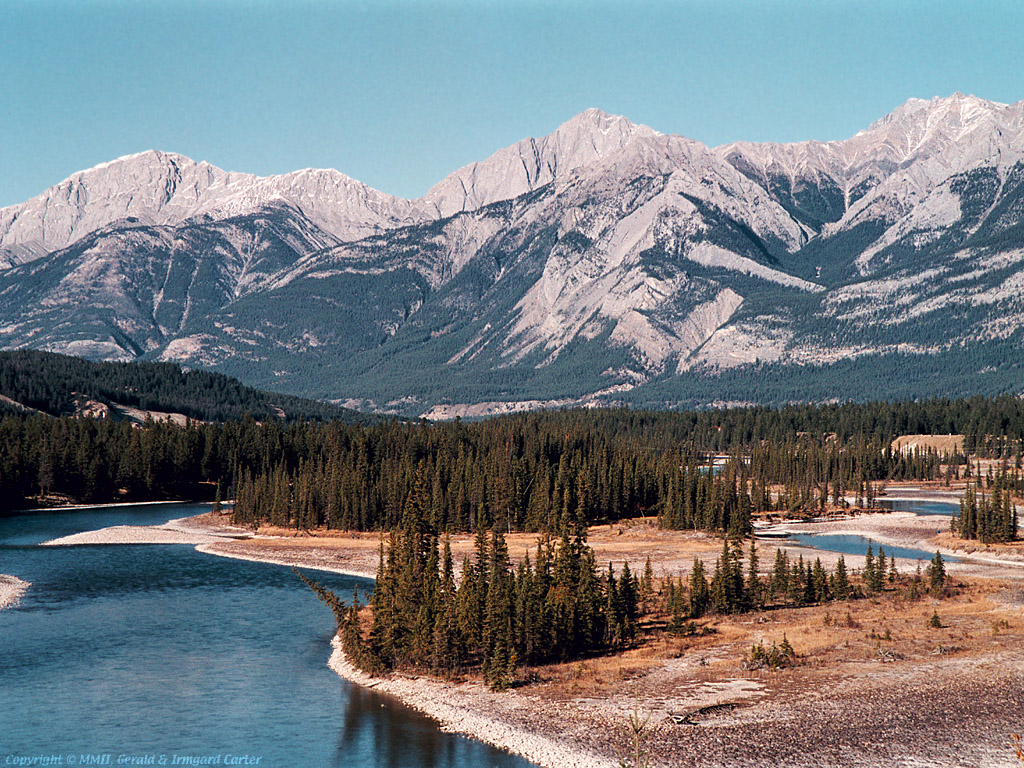 We make frequent trips to the Canadian Mountain national parks. This year (2000) we made an usually brief stay of only 10 days. Fortunately the weather was very good for the whole stay. We are not as familiar with Jasper as we are with Banff, Yoho and Glacier. I think next time we'll make a point of exploring around Jasper. This area has a broad valley and we have found it easier to find large animals here than in other areas of the Rockies.