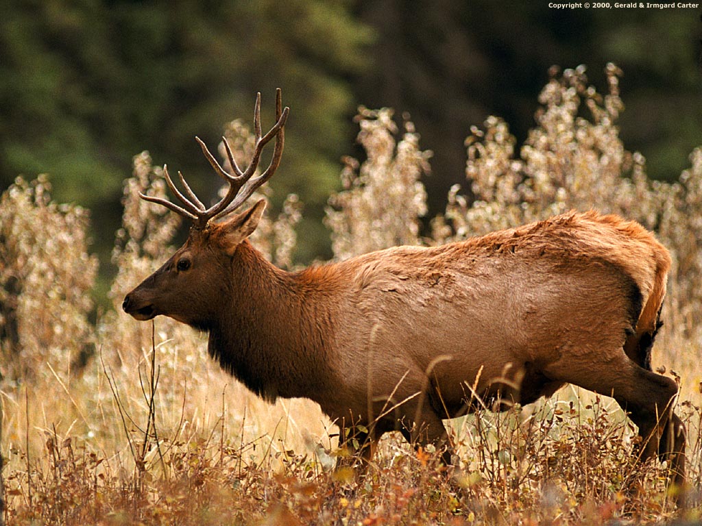 Generally speaking, Irmgard makes most of the nature photographs and I (Gerald) make most of the landscapes. Just to prove that we are quite capable of making good photographs in each other's fields, here is a photograph I've made of a young Elk bull. In the previous photograph, Irmgard posted one of her landscapes.