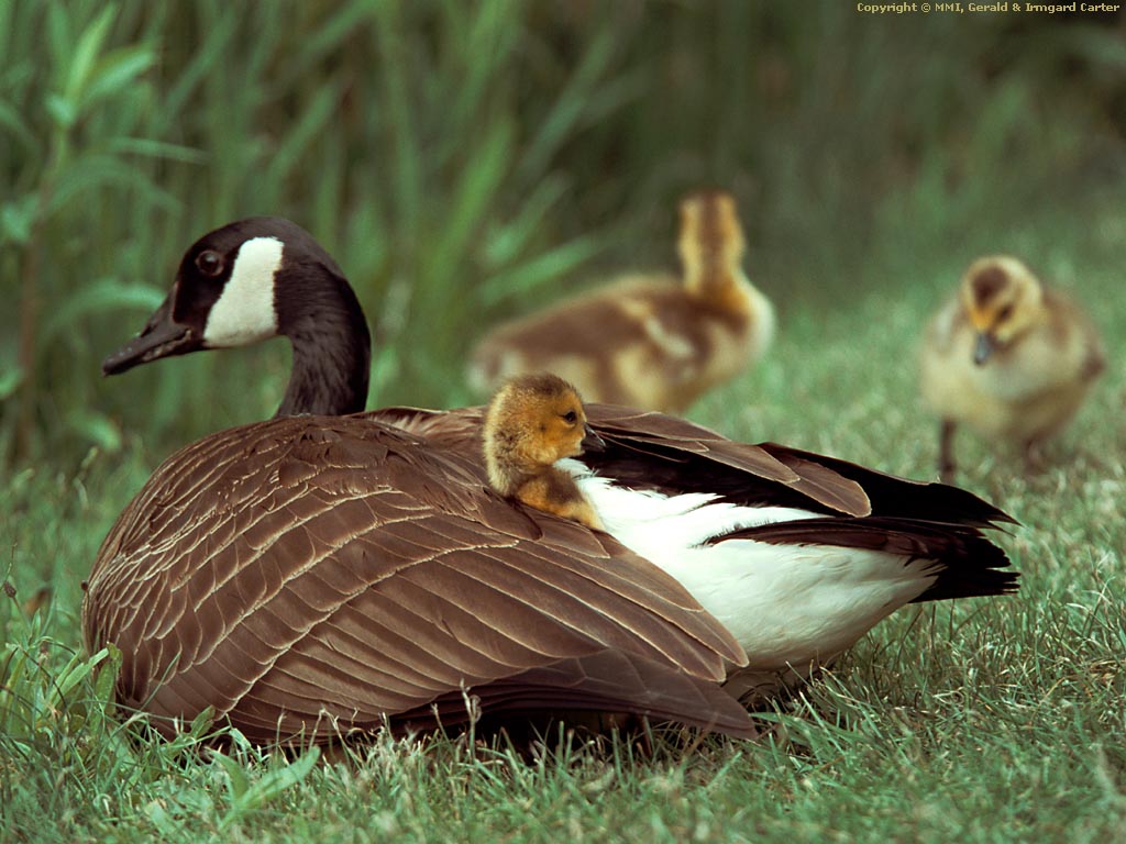 We were hoping to capture some good images of newborn goslings or ducklings as we walked around the paths in the George C. Reifel bird sanctuary. We split up and each of us separately tried our luck with little to show for it. When we met up again we were sitting on the steps to a raised lookout when a family of Canada Geese came wandering down a path towards us. We were delighted to watch and photograph as the mother offered shelter under her wings to her six weary goslings while the father kept guard over his family.