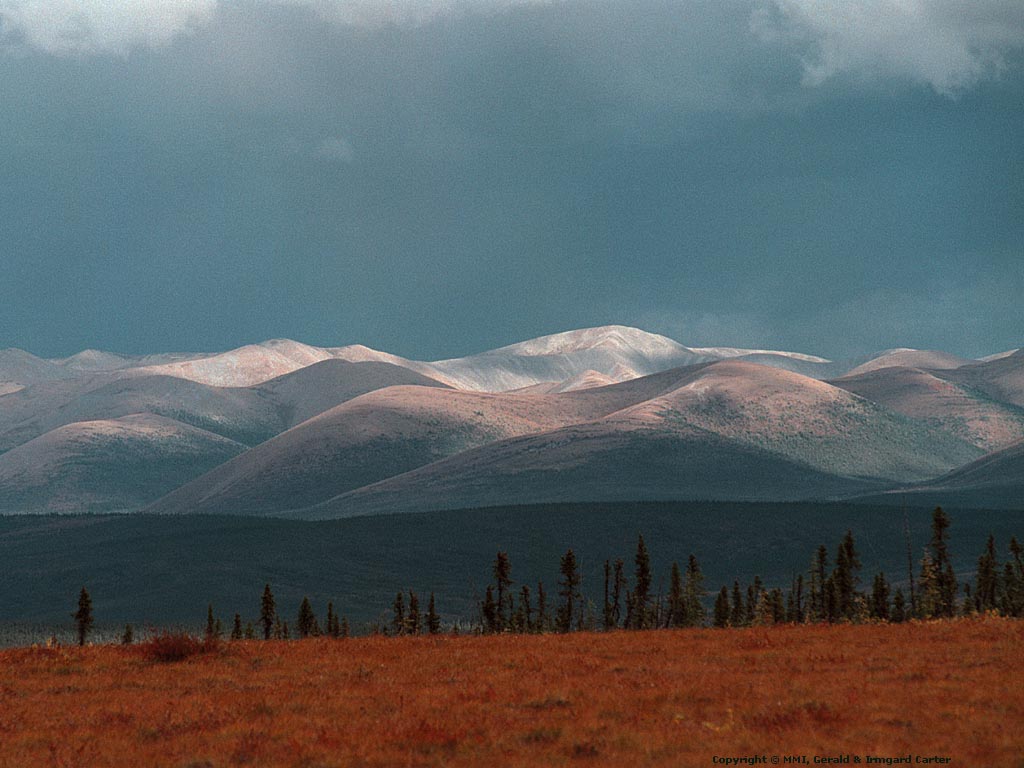 All of the trees you see here are very short because of the harsh climate, most are less than 2m high. They are only found in valleys this far north. The tundra in the foreground has turned to its fall colour.