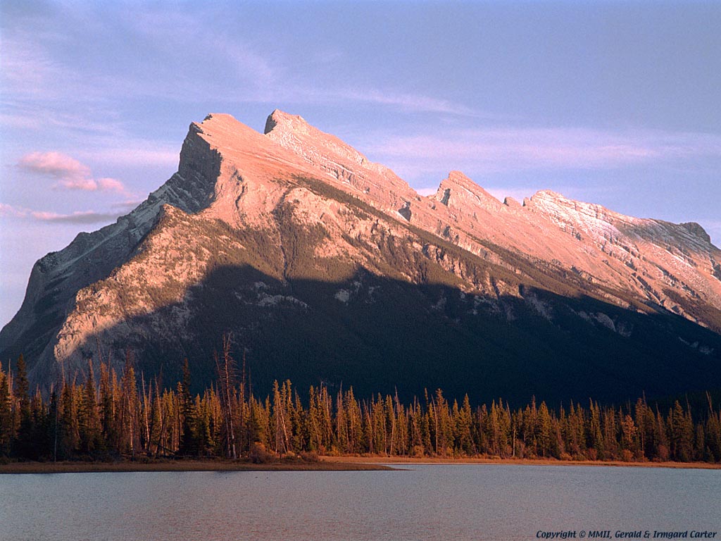 Here we see Mt. Rundle from the edge of Vermillion Lake. A road provides easy access to this point and the Trans-Canada highway is only around hundred metres away.