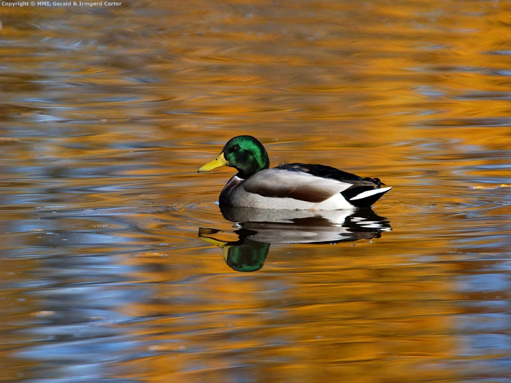 This photograph was intentionally made for computer "wallpaper". A considerable area was left around the duck so that different croppings can be made for the different sizes of monitors. Note that in the actual wallpapers, the image is cropped a little bit more on the bottom and to the right to improve the composition.