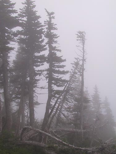 Our problem was that we believed the weather report. The morning clouds were supposed to clear in the early afternoon so that we would have a cool walk up to have a clear view when we reached the top. Instead we had cold weather and fog the entire hike. The second picture here gives an idea of the conditions.