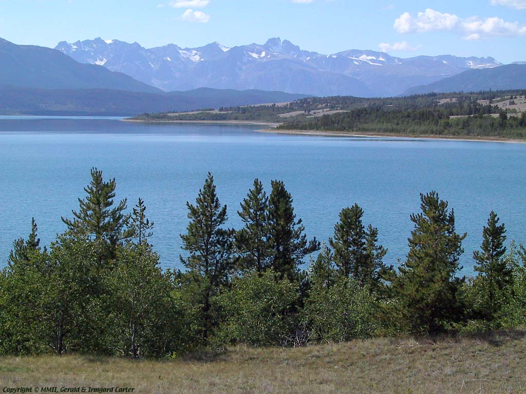This image is very representative of the Chilcotin area of British Columbia. This area is the western interior of the province, up to the mountains of the coast range. Because it is east of those mountains, the climate is dry and the area is dusty. The vegetation has to be able to withstand a couple of months of drought every year. With the winter, the rain and snow comes making sure there's plenty of water for the many lakes in the area. Much of this area is ranch land with only a few public roads (actually forest service roads, you want to have a sturdy vehicle for them).