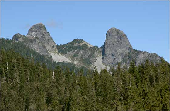 The following view of the "Lions" is reached after perhaps a half hour into the hike. These two peaks are familiar landmarks to Vancouverites as they are clearly visible from much of the city.