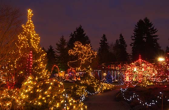 Every December, the VanDusen Botanical Gardens dresses up and invites Vancouverites to come to see the lights. See their site for details. The roasted chestnuts are good, too!