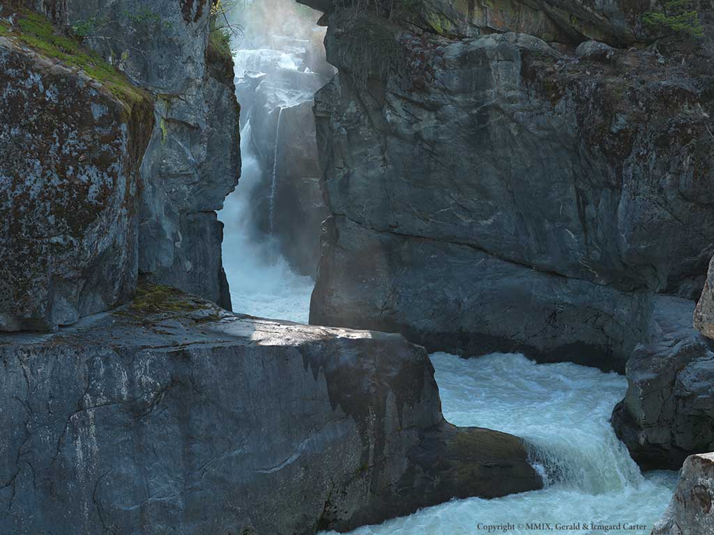 During some very hot weather, we decided to visit several nearby waterfalls. There were some forest fires raging at the time and so the air was thick with smoke, not good for landscapes. This waterfall is the furthest one we visited, and the most spectacular. It isn't particularly high, but it has a huge volume of water flowing through it.