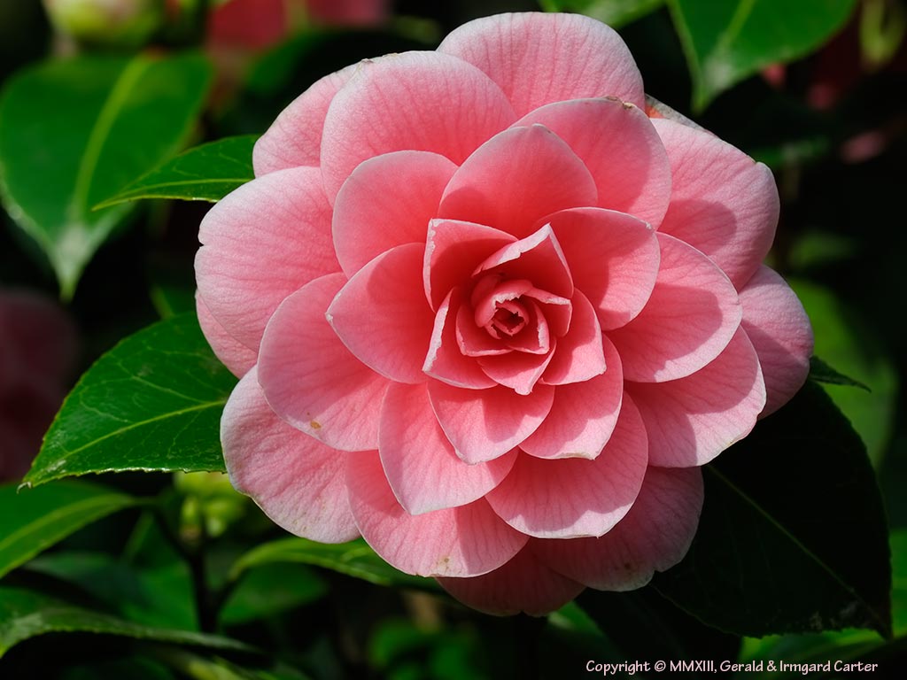 Camelias are delicate flowers, easily damaged by rain. They are also quite variable in both hue and petal structure. When they are in good condition, they are stunning!