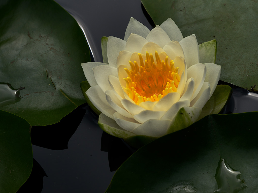 The camera was set to underexpose this picture to preserve the highlights. The contrast has been increased and the overall brightness decreased to emphasize the details in the flower that are so bright that they are difficult to see.