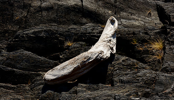 Botanical Beach has a variety of interesting geological features to explore. This picture was made close to the main trail's arrival at the water. The driftwood may have been tossed by a storm swell as it was around 100m from the water's edge when we visited.
